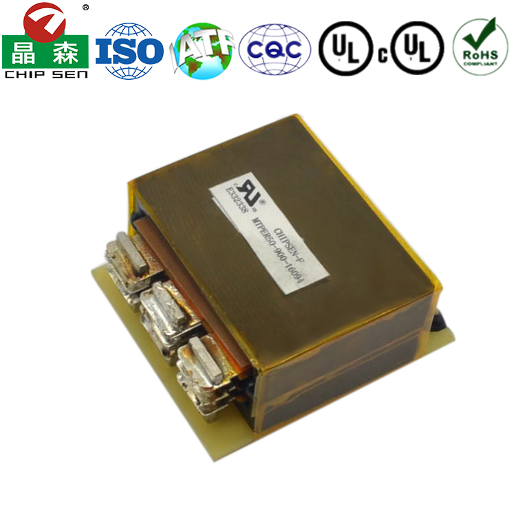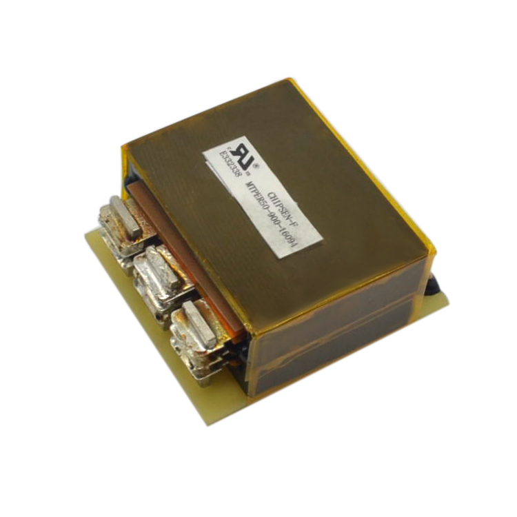 高功率能力:支持300W~1.5kW(取決于散熱和拓撲)。 平面繞組設(shè)計:采用PCB或多層銅箔繞組,降低集膚效應(yīng)損耗。漏感極低(通常<1%),適合LLC等諧振拓撲。 屏蔽結(jié)構(gòu):內(nèi)置磁屏蔽或銅屏蔽層,減少電磁干擾(EMI)。 高頻工作:50kHz~500kHz(LLC諧振拓撲可達1MHz)。 高效率:96%~98%(軟開關(guān)技術(shù)+低損耗磁芯,如PC95/N49)。 強散熱能力:平面設(shè)計利于導(dǎo)熱,可搭配散熱片或風(fēng)冷。